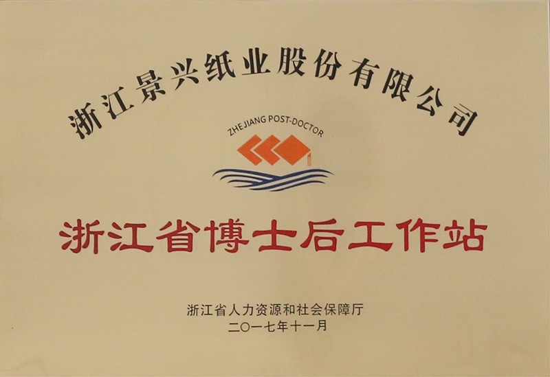 | 2017. | 04. | 景興紙業博士后工作站通過浙江省博士工作站審批,同年11月獲得浙江省人力資源和社會保障局授牌。 |