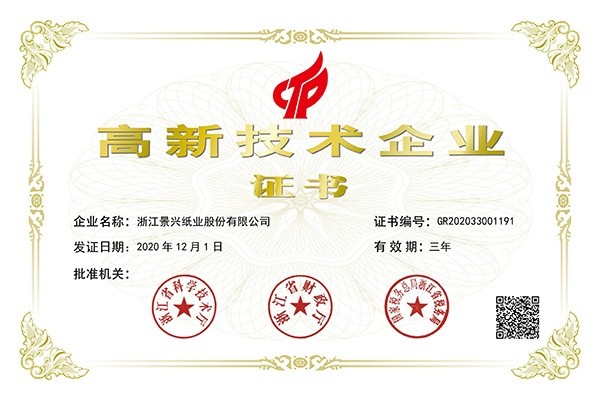 | 2011. | 09. | 景興紙業首次獲得國家“高新技術企業”證書。 |